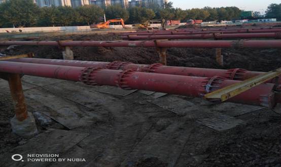 本工程施工范围内含污水顶管西起W9接收井,东至W23接收井,全长943m,除W9-W10顶管段采用D800 Q235B,钢管其余顶管段采用D800 F-B型钢套环橡胶圈防水接口钢筋砼管(国标Ⅲ级管)。各类工作井、接收井共计15座,均为钢筋混凝土结构,设计要求采用排水下沉法。 目前我部完成了项目部搭建、钢筋场地围挡、现场控制点加密、井位测量放线、方案编写等前期准备工作。