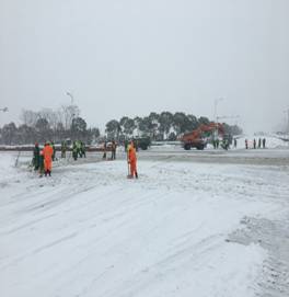 目前桥梁工程进展:石坊桥本月完成所有桩基工程。凌霄路市政工程、国华路市政工程、羲和路市政工程总计逆做井32座,沉井2座,已完31座,凌霄路因地铁公司因素剩余2座井暂未开工,羲和路因场地因素剩余1座暂未开工,顶管工作除坤宁路已全部完成,沉井下沉年前已完成一座,剩余一座因场地问题暂未下沉。井内回填砌筑井筒已全部完成,努力做到不留隐患。扫雪工程应业主要求突击加班按时保质完成,并获得业主一致好评。