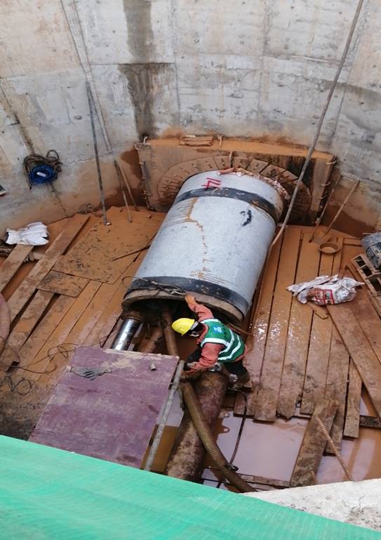 2、 正方大道顶管挖探沟,钢筋笼制作,准备钻孔灌注桩施工。