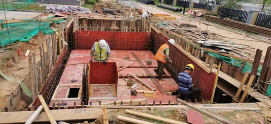航空产业片区棚户区改造横溪吴麒路以东、横禄路以南地块安置房项目本月完成挂网喷浆800平方米,剩余700平方米因土方未开挖完成暂未施工,锚杆剩余19根因拆迁问题无法施工,高压旋喷桩剩余315米因拆迁问题无法施工。马高路工程已完成撇洪沟箱涵完成主体和17米挡墙混凝土浇筑。空港零星摇号工程应业主要求有序开展;高家边复建房试桩工程总计18根目前已完全部完成,14根抗压桩,撕根抗拔桩,总计536米。G27房地产开发工程因项目手续问题目前暂未施工。中船绿洲污水改造工程隔油池部分已浇筑完成并拆模,顶管班组目前已进场,剩余部分开挖埋管及路面恢复预计本星期全部完成;盛江花苑8期桩基工程已完成旋挖桩8根锚杆桩6根并准备进行试桩检测工作。