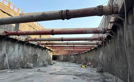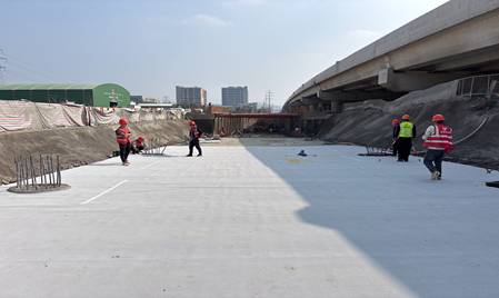 2025年2月13日,我项目部年后正式施工,新的一年面临着新的挑战,安全质量进度等都要更加的重视起来。剩余的工程量已具备施工条件。在诚信大道匝道隧道施工前,已对项目部管理人和班组进行了安全技术交底,在施工中保证安全、保证质量的去完成每一项工作。现场剩余工作量为9节隧道,每节约28m,截止3月底日完成全部的土方外运、挂网喷砼、垫层浇筑、钢支撑安装等工作,目前已浇筑两节隧道底板混凝土。