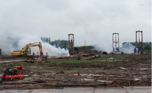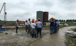 工地现场目前配备两台深层搅拌桩机(用于支护桩施工)、四台工程钻机(用于灌注桩施工)。工程完成情况:试桩全部完成且检测全部合格,支护桩完成工程量过半,灌注桩工程已平稳有序开展。我项目部拟于7月20 日前完成支护桩工程,于7月底完成所有桩基工程。工施工期间欢迎各单位领导莅临指导,在此项目部也保证会保质保量完成拟定目标,为公司再添新光彩。