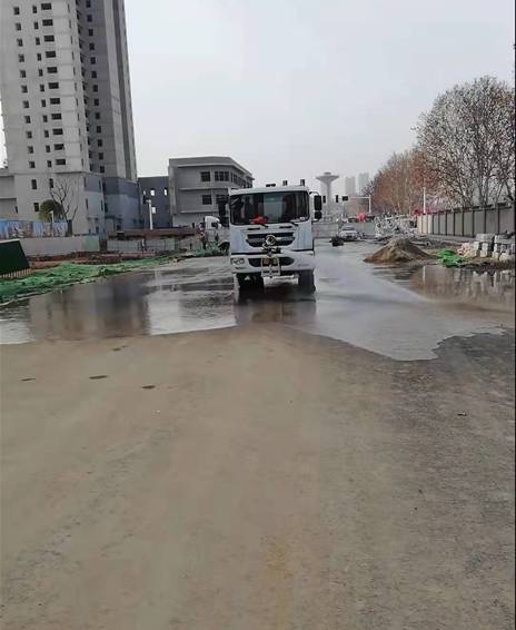 施工完成后洒水清扫道路